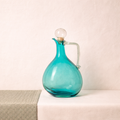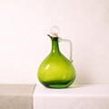 Crushed red blown glass jug with transparent stopper.